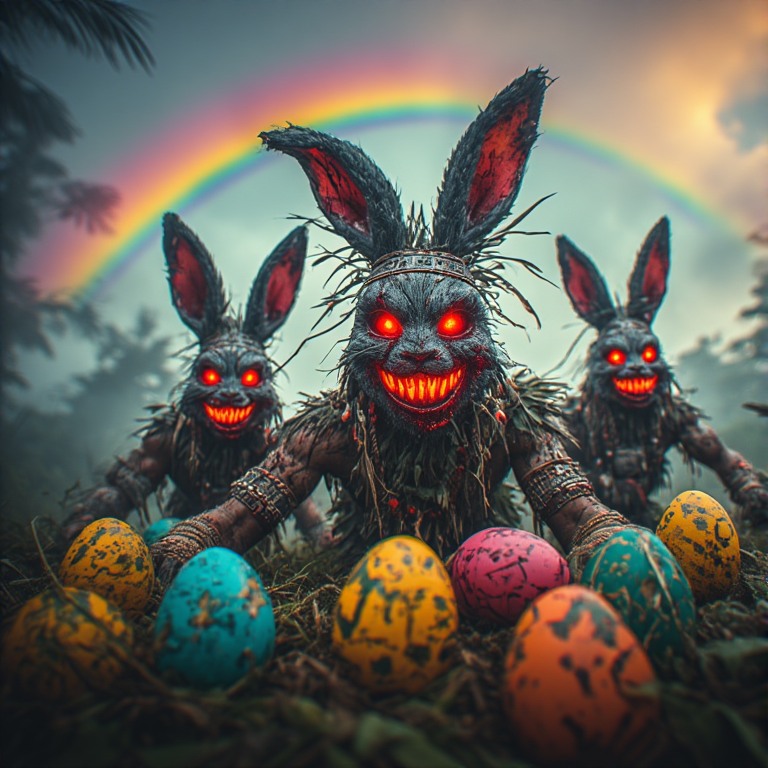 Join Farmer FukFace and His Merry Band of Evil Prankster Bunnies in a Diabolical 18+ Egg Hunt thru a Labyrinth of Easter Hell!